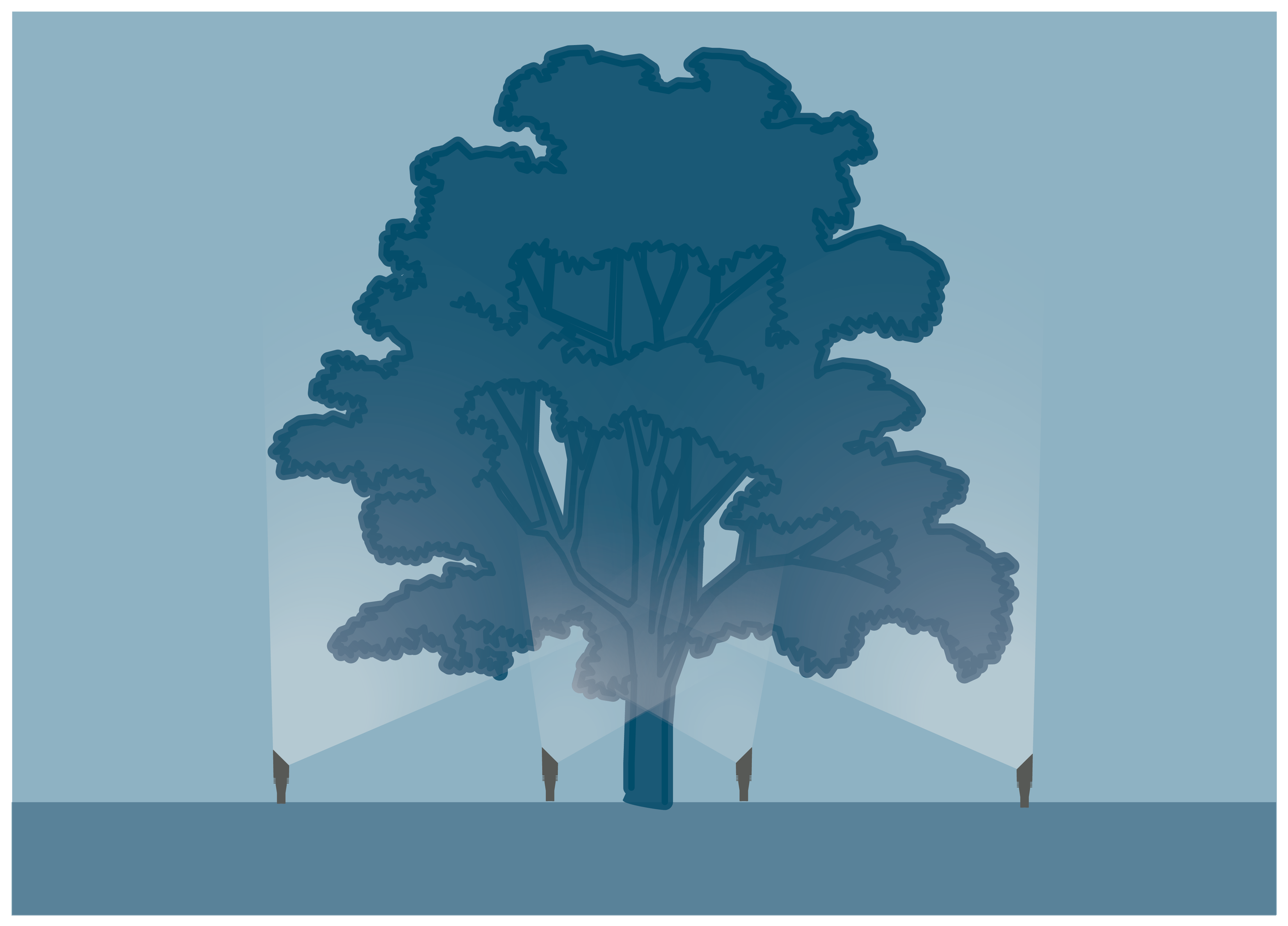 Moonlighting aims to replicate the natural effect of moonlight filtering through trees. It involves placing fixtures high up in trees or on elevated structures, such as pergolas or rooftops, to cast a soft, diffuse light downward onto the landscape below. The fixtures used for moonlighting are typically shielded and positioned to minimize glare, creating a gentle and subtle illumination that mimics the ambient light of a full moon.